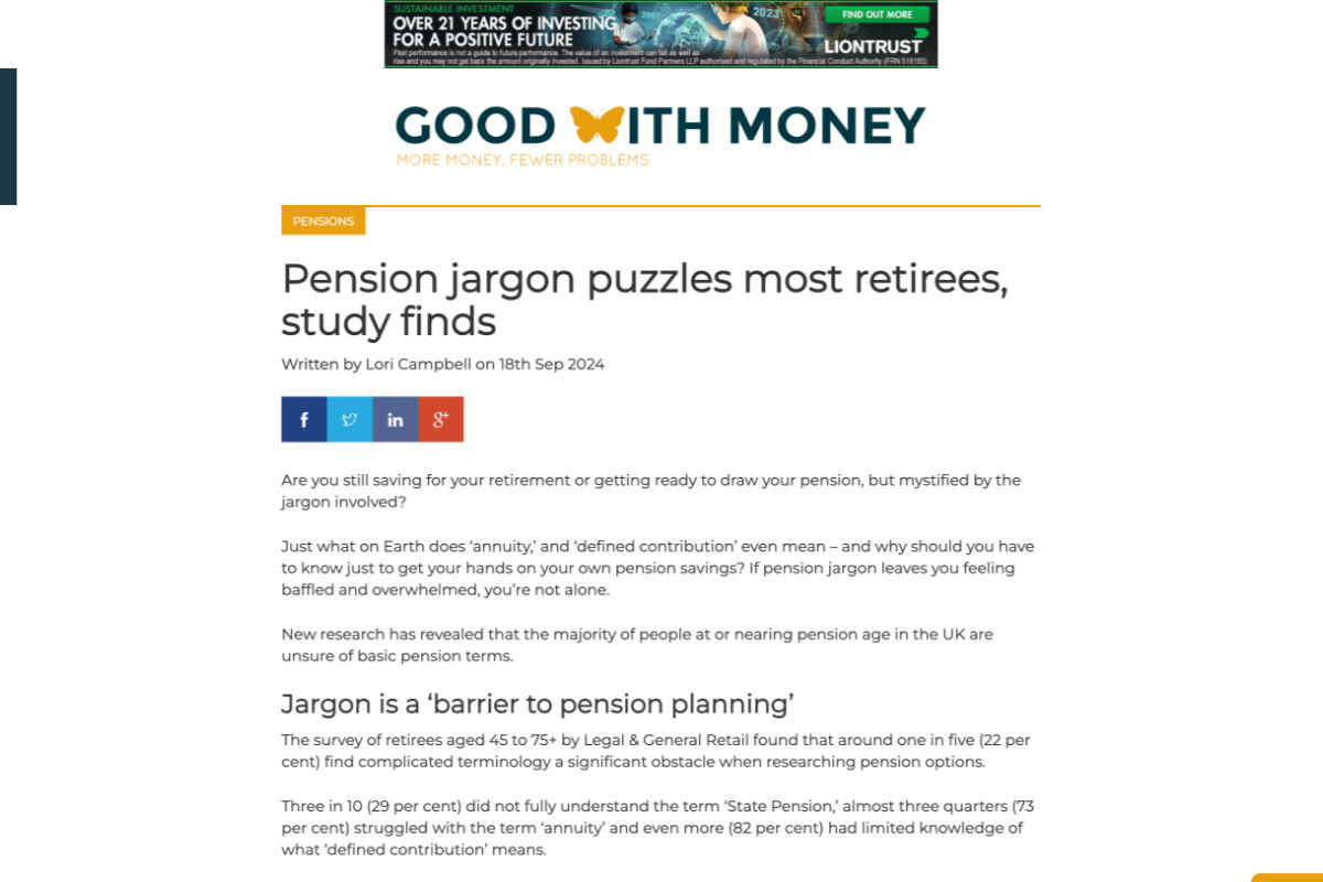 The survey results, supported by Professor Motagnoli’s expert analysis, gave our outreach a strong foundation. This allowed us to present a well-rounded story to media outlets. We emphasised how Legal & General’s tool could address the key issues retirees face, such as confusion around pension terminology and a lack of preparedness for retirement.